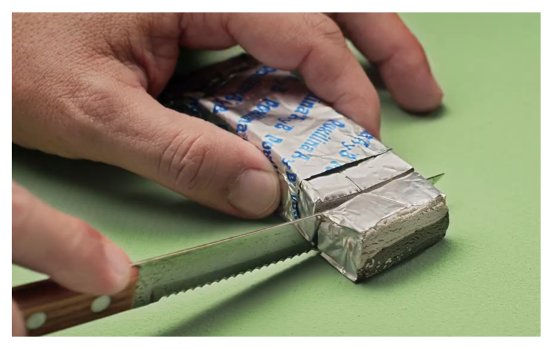 Cortá la cantidad de Poxilina® que necesites en partes iguales.